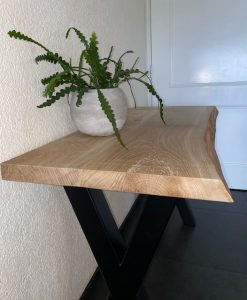 De eiken plank is onbehandeld en kan naar eigen smaak worden behandeld met olie, beits of was. Afmeting: 125x50x76 cm. In alle maten te verkrijgen, prijs in overleg.